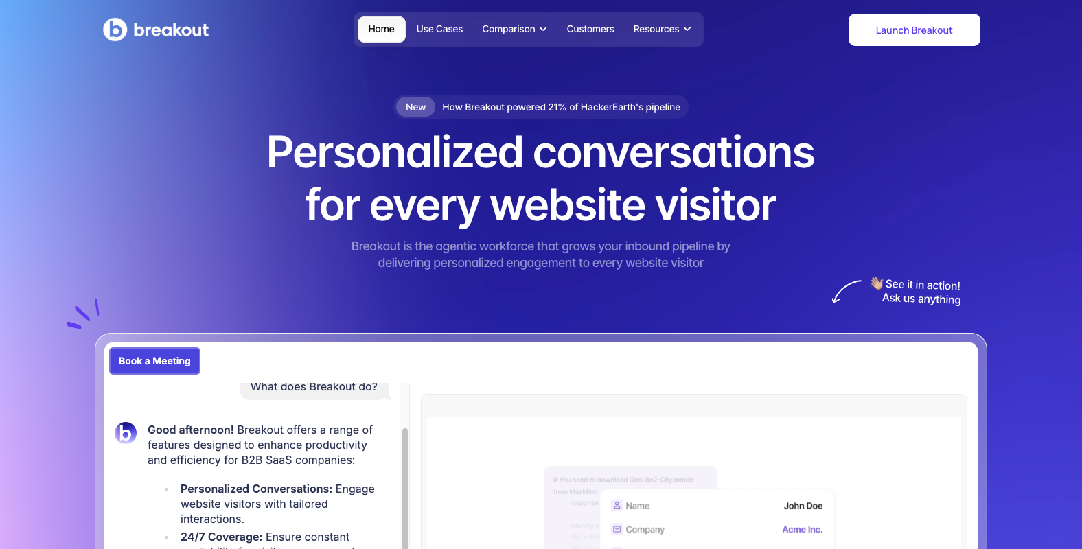 Breakoutは、元Googleの社員によって設立されたスタートアップで、こちらも営業分野に特化したAIエージェントを提供しています。