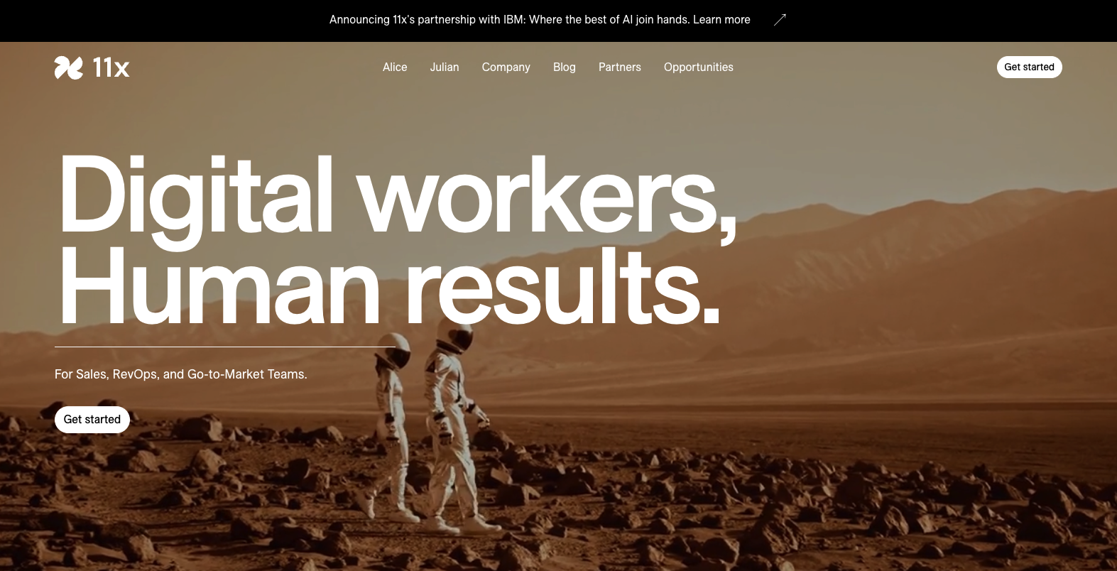 米サンフランシスコを拠点とするスタートアップの11xは、営業開発(SDR)業務を代替する「Alice」と、インバウンド・アウトバウンドの電話業務を担う「Julian」という、二つの自律型デジタルワーカーを展開しています。