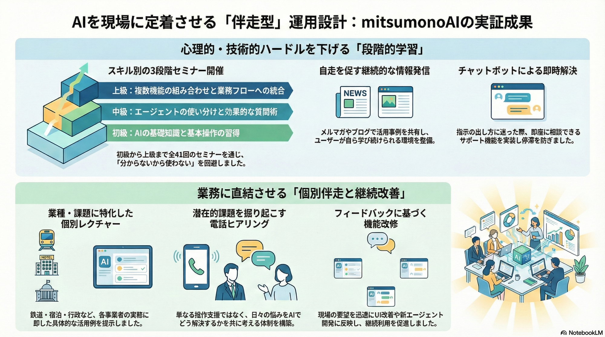 実証概要 mitsumonoAIの機能を現場で解放するための運用設計(伴走・学習・継続支援)