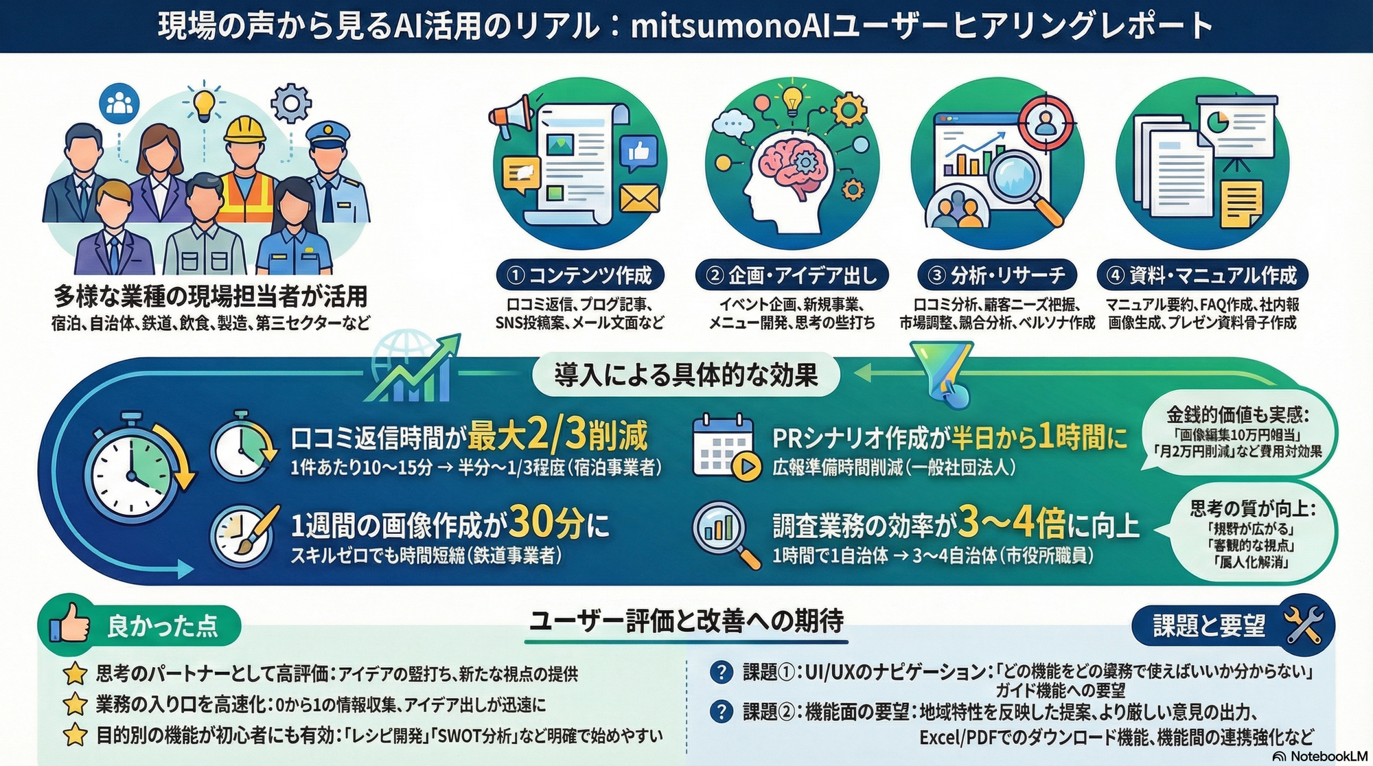 実証事業では、時間削減だけでなく、ユーザーが感じた価値も重要な指標でした。
